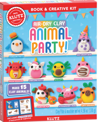 Make the cutest clay animals with just a few simple steps. No sculpting experience required! First, learn how to make simple shapes with 10 colors of clay, like balls, triangles, and snakes. Then put them together to create your new animal friend. Customize your creation with cute hats and other fun accessories. This kit includes everything you need to make up to 15 adorable animals, including a boba bear, unicorn kitty, strawberry milk cow, and avocado axolotl, a.k.a. Avolotl.