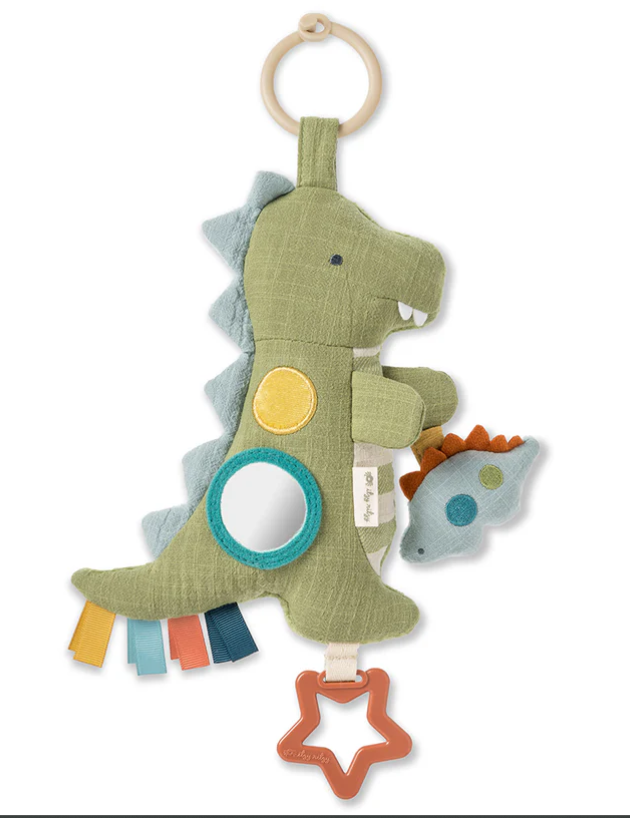 Cuddle, play & learn! Your little one’s new exploratory tagalong! The attachable Bitzy Traveler is made with minky velour and features jingle sounds, a dangling ring, crinkle textures, a peek-a-boo wing and more!