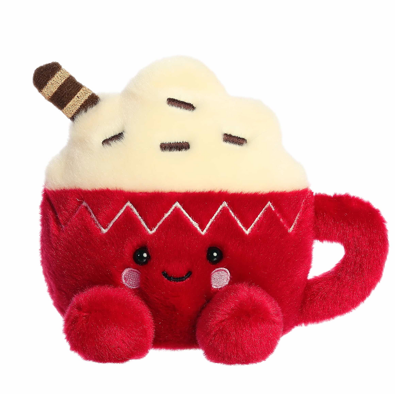 Cassia Hot Cocoa is a plush red mug filled with a swirl of creamy whipped topping, chocolate sprinkles, and a striped cookie straw for extra charm. With a rounded handle, soft texture, and rosy cheeks, she’s a huggable cup of calm holiday joy.