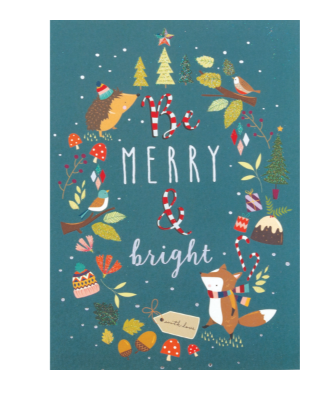 Send seasonal greetings with this charming greeting card for Christmas! It features a wreath of candy canes, fir trees, and woodland critters accented by red foil, silver foil, and glitter. A humorous message is perfect for sharing the joys of the season with the people you love most!