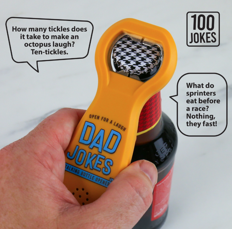 This Talking Bottle Opener is the perfect gift for any dad with a sense of humor. Featuring a variety of versions from classic dad jokes to fishing, golf and even poop, it’s sure to bring laughter while cracking open your favorite drink.