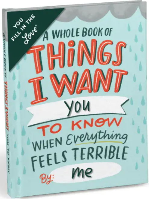 This little book is a secret weapon of empathy and support. Just fill in the blanks, and it transforms into the only book of its kind in the universe: a personalized, meaningful gift for a friend or loved one who’s struggling through a hard time. Whether intended as something more than a sympathy card, get well soon gift or condolence message this unique fill-in-the-blank book will help you find the words. Even if you’re not a writer, it’s an easy way to show them you really care.