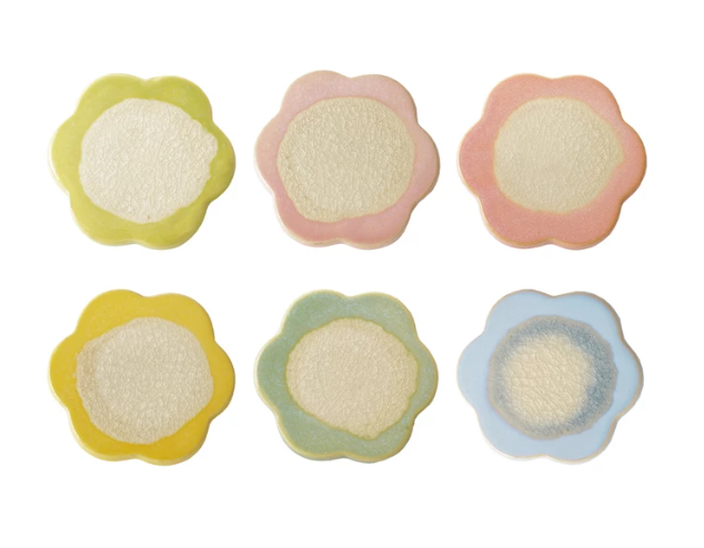 4-1/4" Round Stoneware Flower Shaped Coaster/Trivet, Reactive Crackle Glaze, 6 Colors (Each One Will Vary)