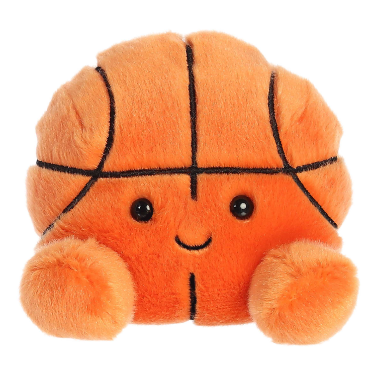 Hoops is a vibrant orange plush with black lines crisscrossing to mimic a basketball's segments, and her cheerful face, with loving eyes and a warm smile, radiates confidence and teamwork.