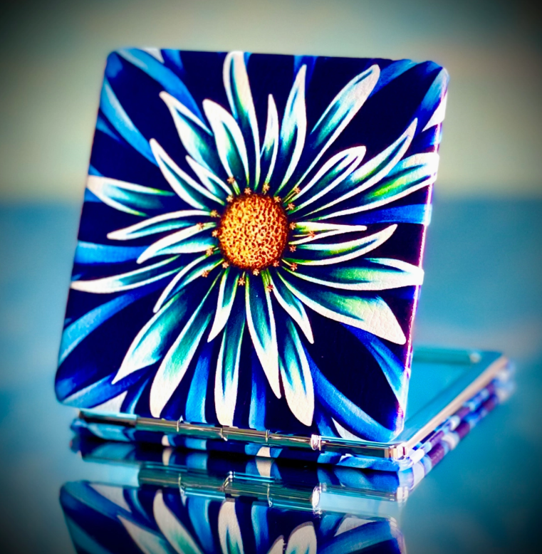 Take your style everywhere you go with these vibrant, art inspired Compact Mirrors! This classic square, clamshell-style compact mirror features a durable semi-gloss textured surface. Open it to reveal two square mirrors for your convenience; one has a higher level of magnification! Toss it in your purse so you can check your makeup on the go!