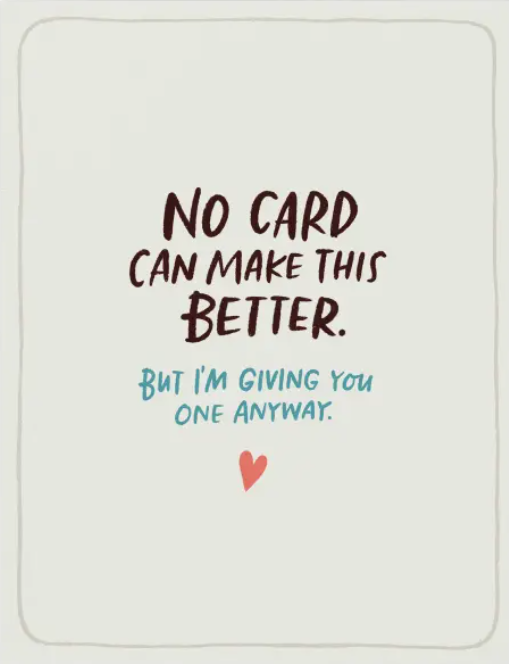 When you care enough to say, “I have no idea what to say. But I love you.” Which is all anyone can really be expected to say. And which might be more powerful and comforting than you’d imagine.