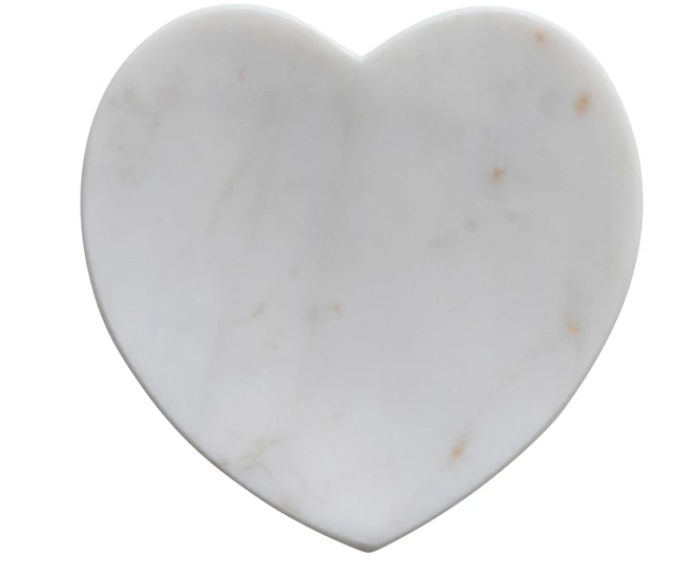 This cottage-inspired marble dish showcases the silhouette of a heart. This piece is food safe. Hand wash only. Made from marble.