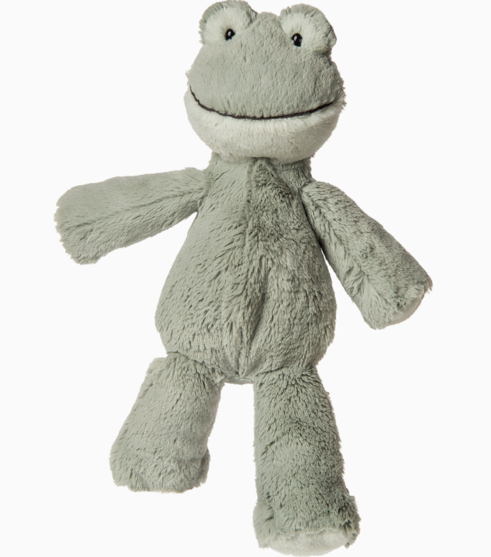 Marshmallow Zoo Mossy Frog features super soft sage green fabric, a soft sculpted face, a fabric smile, and plastic eyes. Kids love to hold and snuggle up to marshmallow zoo soft toys. Made of the softest fabric we’ve ever used, each one measures approximately 13-inches tall from head to bottom of feet and approximately 8-inches when sitting.