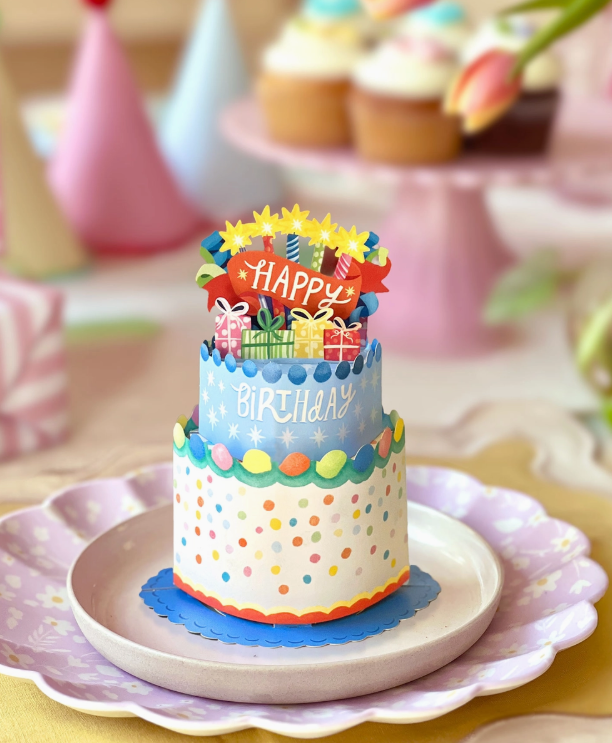 Mini Confetti Birthday Cake. Includes: Pop-Up Cake, matching blank note card and decorative mailing envelope.