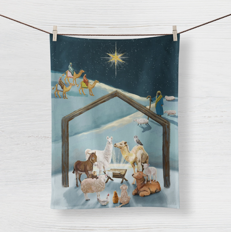 Enjoy the quiet contemplation of this new nativity tea towel by Cathy Walters.