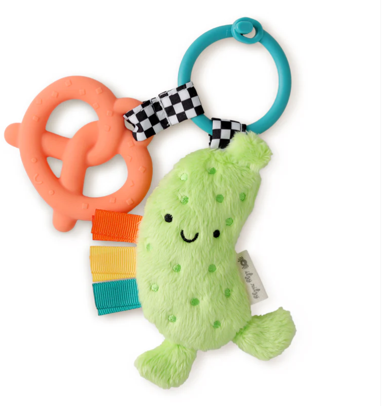 Connected to a handy dandy ring, baby can easily snuggle up to their plush lovey pal while soothing their gums on the attached teether. Plus, each character features entertaining crinkle sounds & textured ribbons for a playful pick-me-up!
