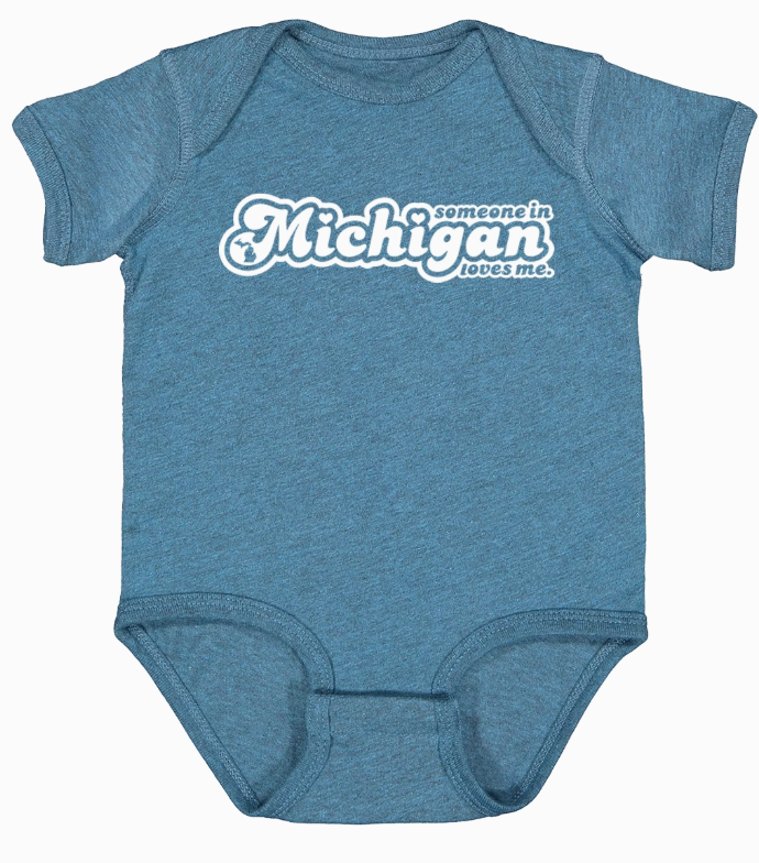 Let the little one in your life know that someone in Michigan loves them :) Printed on super-soft, poly/cotton blend onesies.
